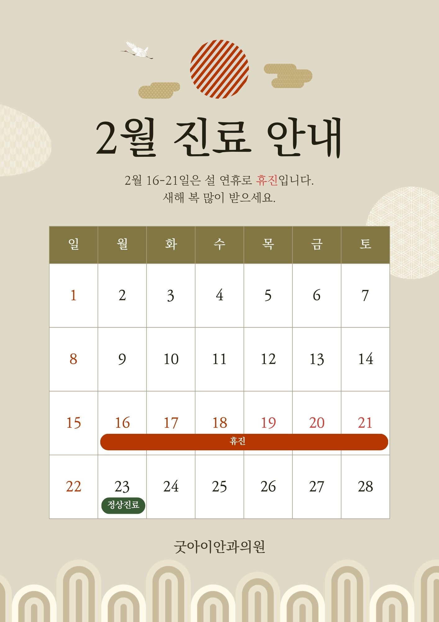 2026년 설 연휴 휴진안내